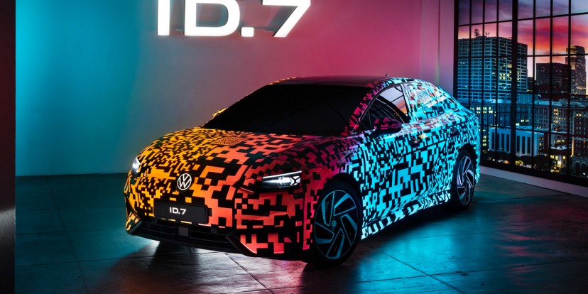The camouflage on the ID.7 prototype is called Electroluminescent and is made up of 40 layers of paint. When an electric current is applied, it causes the car's 22 different parts to display their own unique light patterns.