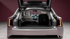 Design-wise, the ES90 features a raised ride height (18 cm ground clearance), a flowing roofline for improved aerodynamics, and the signature Thor's Hammer headlights. The car offers a reasonable 15 ft³ of cargo space, which expands to 25.9 ft³ (44.4 ft³ up to the roof) with the rear seats folded down. A 0.78 ft³ front trunk provides additional storage for charging cables.