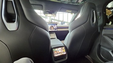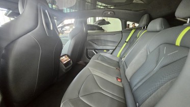 The cabin is built with high-quality materials like Nappa leather and microfiber suede. You will not find cheap, hard plastics here. The seating position is low and stretched out, making it feel more like a sports car than a family sedan. Despite the sporty feel, there is plenty of room. The 118.4 inches wheelbase provides nearly a meter of legroom for people in the back. Passengers in the rear even have their own 8-inch screen to control the 23-speaker sound system and climate.